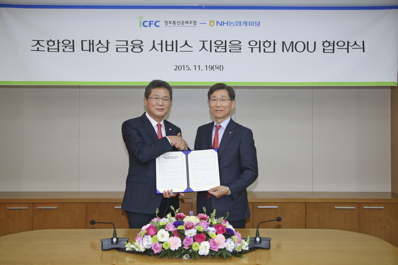 NH농협금융지주는 19일 자회사인 NH농협캐피탈(대표이사 이신형)이 미래창조과학부 인가 정보통신공제조합(이사장 정상호)과 '조합원 금융서비스 지원을 위한 양해각서(MOU)'를 체결했다고 밝혔다.