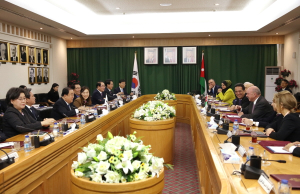 요르단을 공식방문 중인 문희상 국회의장은 현지시간 12월 20일(목) 파이잘 알 파예즈(Faisal A El-fayez) 상원의장과 아테프 타라우네(Atef Tarawneh) 하원의장을 잇달아 만나 한-요르단 의회 간 교류협력 등 양국 간 협력관계증진 방안에 대한 의견을 나누었다.