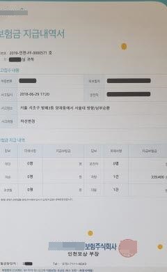 보험료 장난 S보험사, 고객에게 보험금 330천원 지급 통보, 공업사에는 102천원 지급