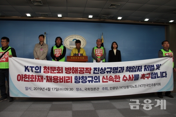 이날 참고인으로 채택된 김철수 KT 사용직노조 경기지회장은 청문회에 출석하지 않았다.