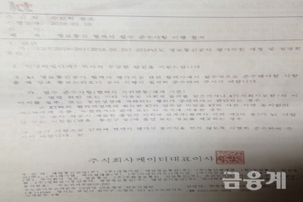 KT 황창규 회장은 “김철수 참고인에 대해서는 전혀 KT가 관여한 바 없다는 보고를 받았다”면서 “공문과 관련해서도 확인해봤는데 일반적인 안내문으로 (협력사 압박 등과) 관계가 없다는 보고를 받았다”고 말했다.