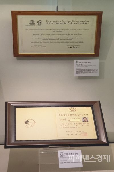 가곡은 유네스코 무형유산위원회 사전 자문회의에서 이미 등재 권고를 받아 2010년 인류무형문화유산(Intangible Cultural Heritage)으로 등재되었다.
