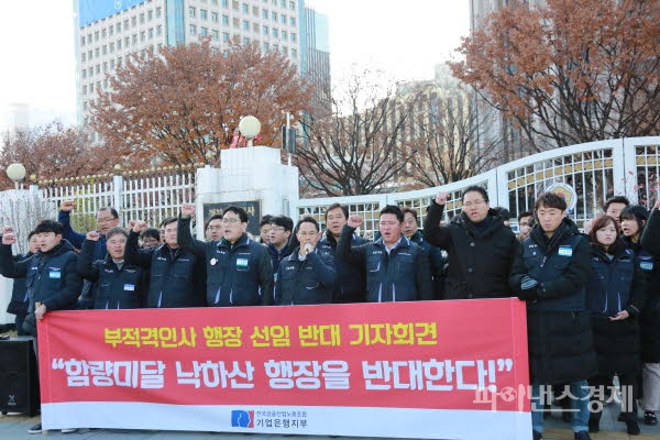 또한 정부가 계속해서 낙하산 행장을 선임하면 1만2천 기업은행원과 은행의 대규모 집회도 계획하고 있다고 말했다.
