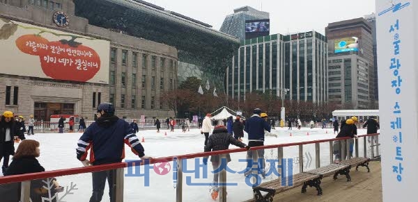 [청년투데이=김원혁 기자] 27일 서울광장 스케이트장을 찾은 이용객들이 서울시청을 배경으로 즐겁운 시간을 보내고있다. 서울광장 스케이트장은 지난 20일 개장하여 내년 2월 9일까지 52일 동안 운영된다.2019.12.27