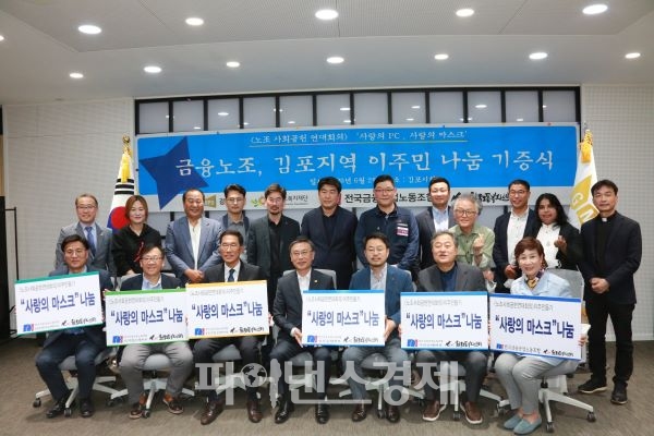 [청년투데이=김원혁 기자] 전국금융산업노동조합(위원장 박홍배)는 2일 오후4시 김포시청 대회의실에서 김포지역 이주민 노동자와 법외체류노동자를 위한 사랑의 마스크와 사랑의 PC 기증식을 개최했다.