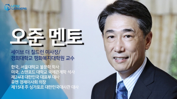 지난 27일 '코로나 이후의 세계 변화'를 주제로 강연한 오준(세이브더칠드런 이사장) 멘토는 서울대학교 불어불문학 학사, 미국 스탠포드 대학 국제관계학 석사과정을 이수했고 UN 유엔 경제이사회 의장을 역임했다.
