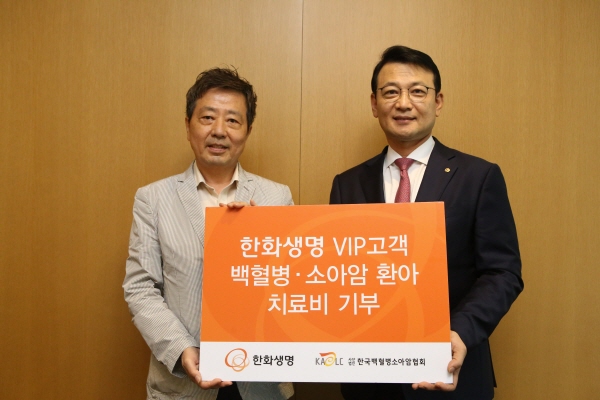한화생명은 ‘모든 생명이 존중 받는 건강한 세상’이라는 비전을 세워 지난 2014년도부터 VIP서비스 기부제도를 도입해 한국백혈병소아암협회 경인지회에 후원을 이어오고 있다.