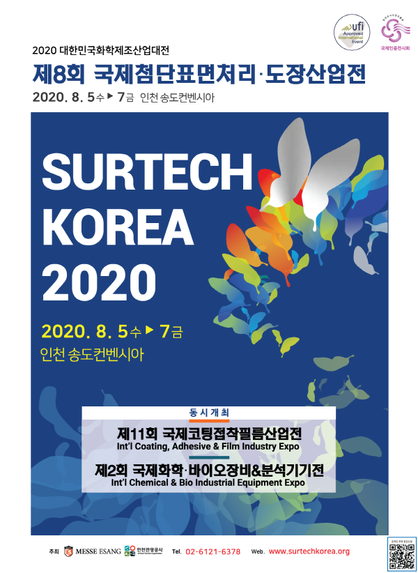 세계 전시산업 분야 최고 권위 국제기구인 UFI(국제전시협회)의 국제인증을 받은 인천 최초의 전시회인 ‘2020 대한민국 화학제조산업대전’은 제11회 국제코팅접착필름산업전, 제8회 국제첨단표면처리‧도장산업전, 제2회 국제화학·바이오장비&분석기기전 등 3개 전시회가 동시 개최돼 130여개 관련 기업이 참가하고 온라인 수출상담회, 전문 컨퍼런스, 기술세미나 등도 동시 개최돼 첨단기술과 제품을 홍보하는 교류의 장으로 꾸며진다.