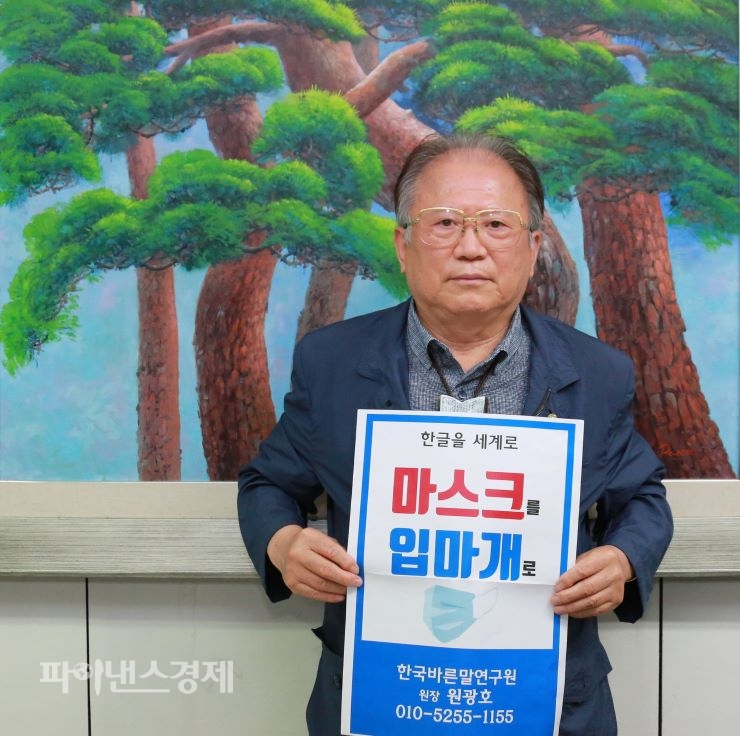 [청년투데이=김원혁 기자] 원광호 한국바른말연구원장은 오는8월3일 11시 서울시 영등포구 국회 정문앞에서 '마스크를 입마개'로 사용해야 한다는 1인 팻말을 들고 홍보에 나선다고 밝혔다.