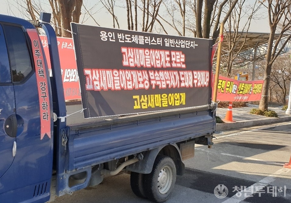 [청년투데이=김민수 사진기자] 고삼새마을어업계가 경기도 안성시 고삼면 일대에서 경기도의 중재로 안성시, 용인시, SK하이닉스 등이 참여해 진행된 '용인 반도체 클러스터 일반산업단지의 성공적 조성과 상생협력 증진을 위한 관계기관 협약'과 관련해 규탄하는 차량시위를 벌이고 있다.