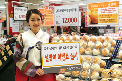 이랜드리테일(NC백화점, 뉴코아아울렛, 이천일아울렛, 동아백화점, 킴스클럽 등 총43개점)에서는 2월 9일까지 KB국민카드로 행사대상 설 선물세트 구매 시 최대 30%할인을 제공한다.