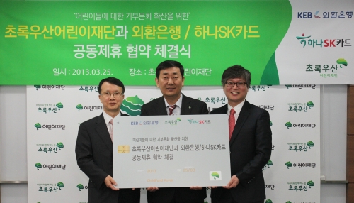 오는 4월 1일부터 외환은행과 하나SK카드 고객들은 초록우산 어린이재단에 포인트로 기부를 원하는 고객은 양사의 홈페이지 접속을 통해 기부를 할 수 있게 됐다.