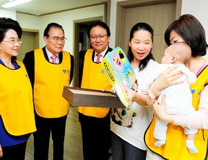 이날 방문은 삼성생명이 세살마을, 서울시 등과 함께 생후 100일이 안된 신생아 500명을 대상으로 진행중인 '탄생 축하' 이벤트 차원에서 진행됐다.